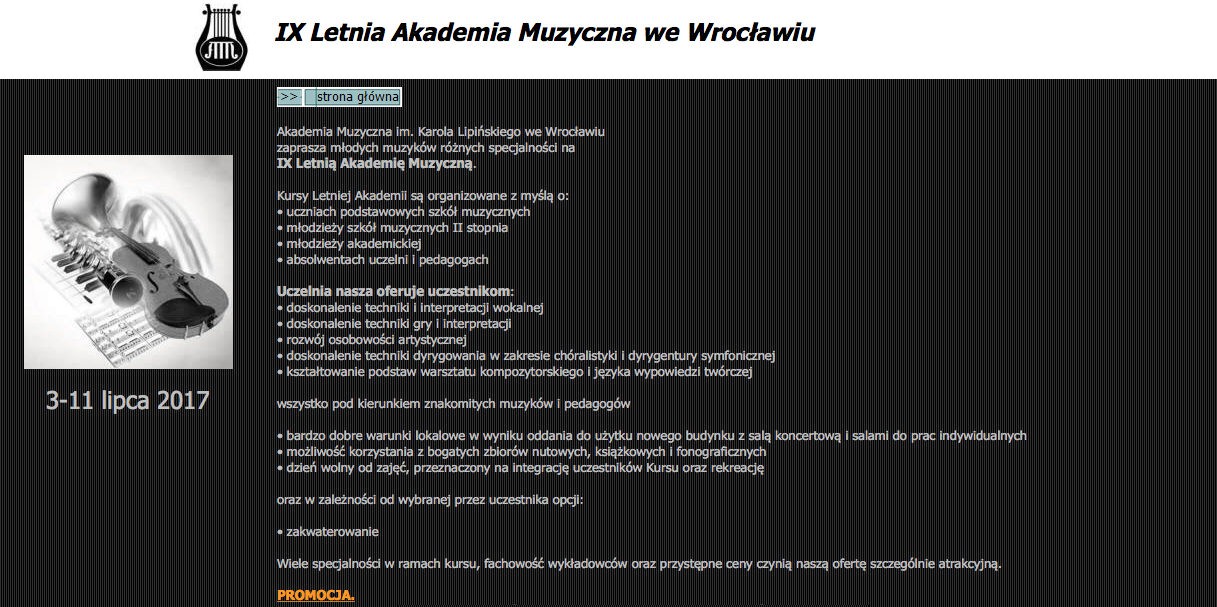 Akademia Muzyczna im. Karola Lipińskiego we Wrocławiu zaprasza młodych muzyków różnych specjalności na IX Letnią Akademię Muzyczną. Wśród wykładowców znaleźli się: